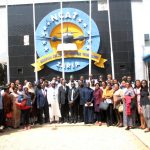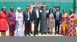 The Minister of Information and Culture, Alhaji Lai Mohammed (fifth from right); Permanent Secretary, Federal Ministry of Information and Culture, Deaconess Grace Isu-Gekpe (fourth right); DG, Nigerian Tourism Development Corporation (NTDC) Mr. Folorunsho Coker (fifth from left); Special Assistant I to the President attached to the Minister, Mr. Segun Adeyemi (third from right); Special Assistant II to the President attached to the Minister, Mr. Williams Adeleye (fourth left) and other management staff of the NTDC, when the Minister paid a working visit to Corporation in Abuja.